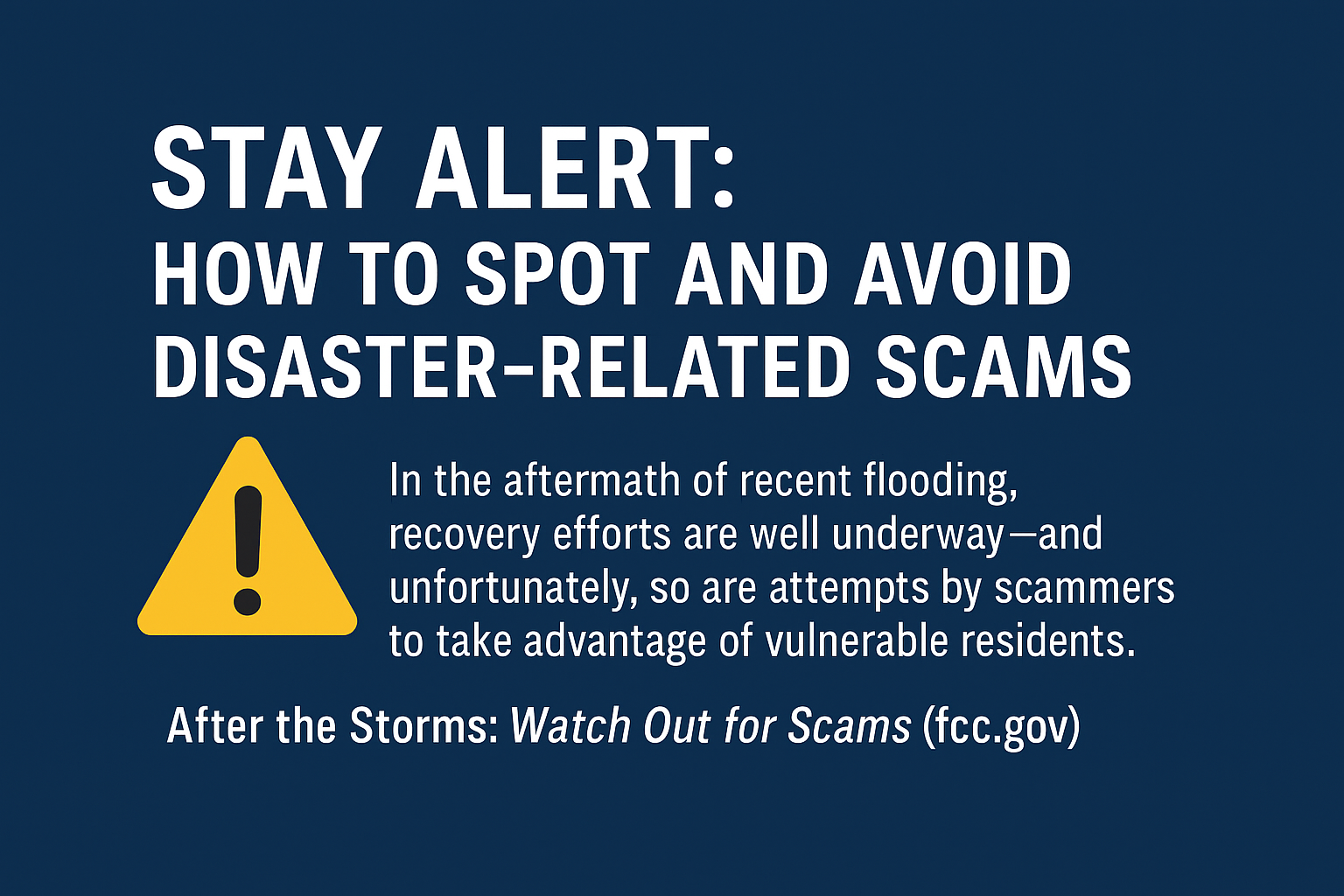In the aftermath of recent flooding, recovery efforts are well underway—and unfortunately, so are attempts by scammers to take advantage of vulnerable residents. Whether it’s fake contractors, bogus FEMA calls, or phishing emails that appear to offer help, disaster-related fraud is a real concern.