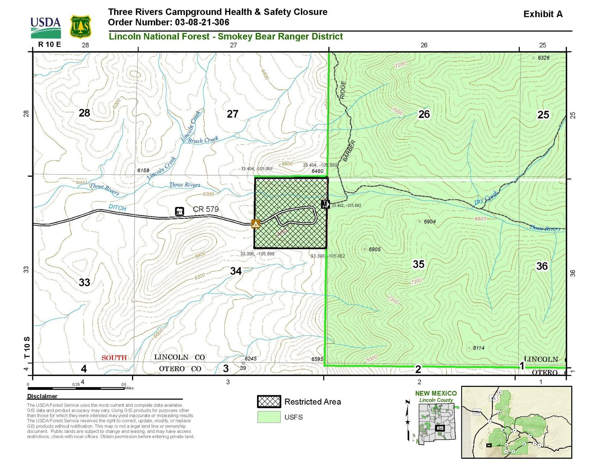 Closure order for Three Rivers Campground and Trailhead will be effective on May 8, 2021, at 12:01 a.m., and shall remain in effect until December 31, 2021, or until rescinded, whichever occurs first. For more info: https://inciweb.nwcg.gov/incident/7440/