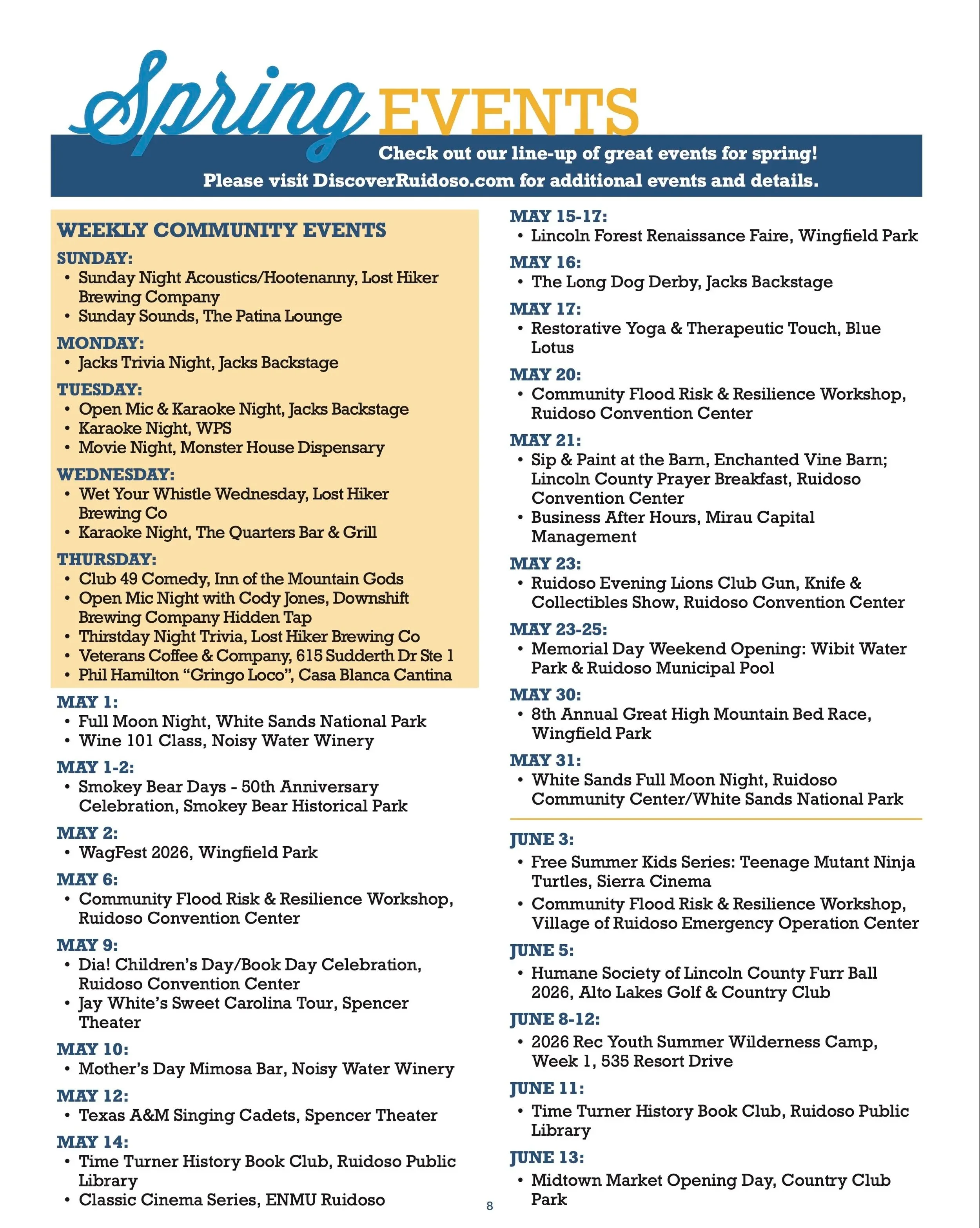 As temperatures rise, these seasonal attractions serve as a reminder of what makes Ruidoso special: access to the outdoors, family-centered recreation, and a strong sense of community.